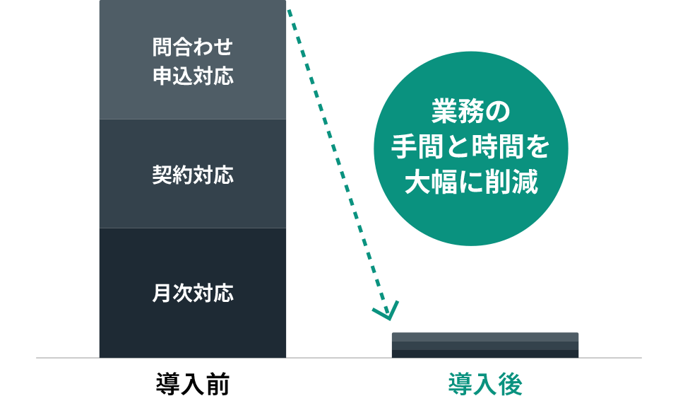 空き状況の問合せから契約・賃料回収まで、煩雑な手続きをランディットに一括で丸投げし、書類やデータの管理等の負担も軽減。浮いた時間とコストをビジネス拡大のための業務に集中させることが可能になった。